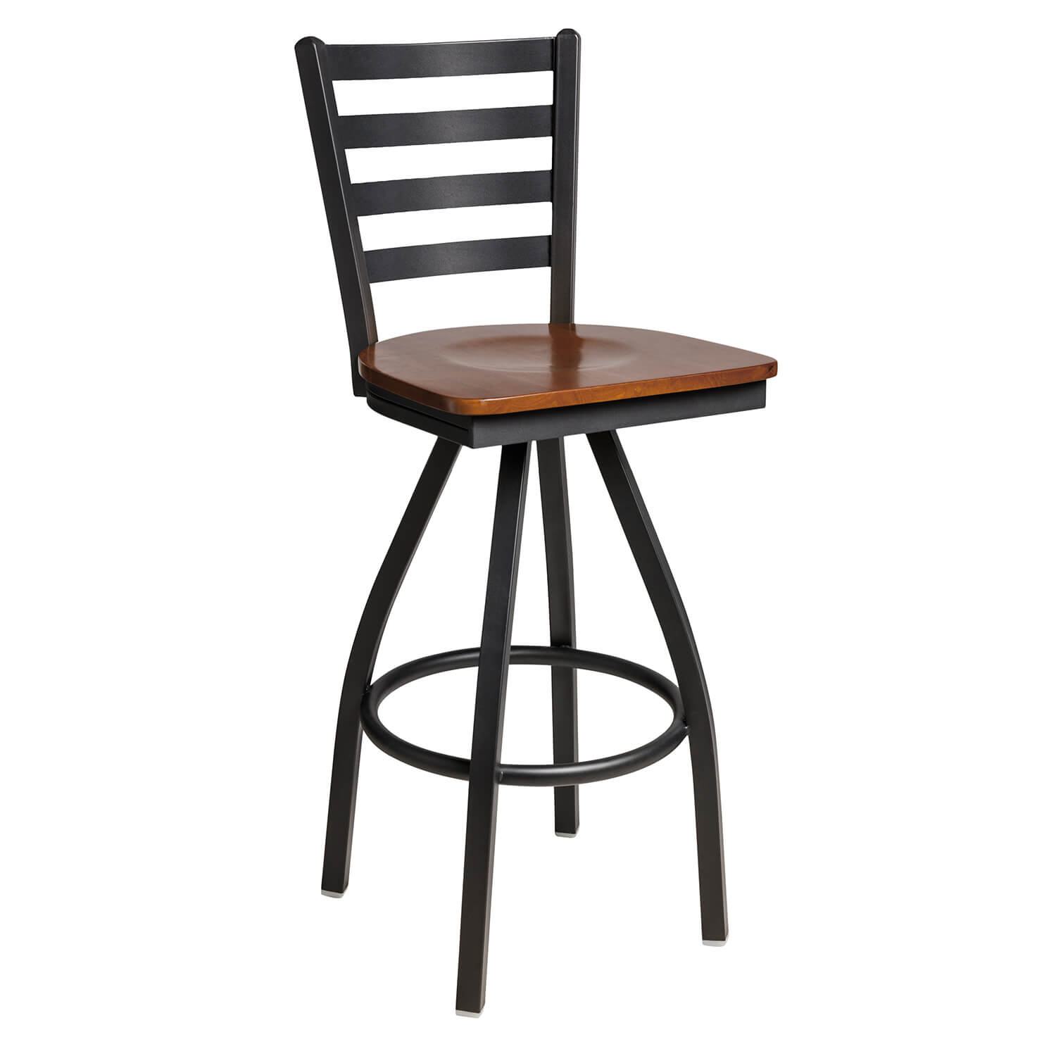 BFM Lima Ladder Back Swivel Barstool – Cherry Wood Seat – Steel Frame – Sand Black Finish – Sand Black Steel Frame for Indoor Restaurants