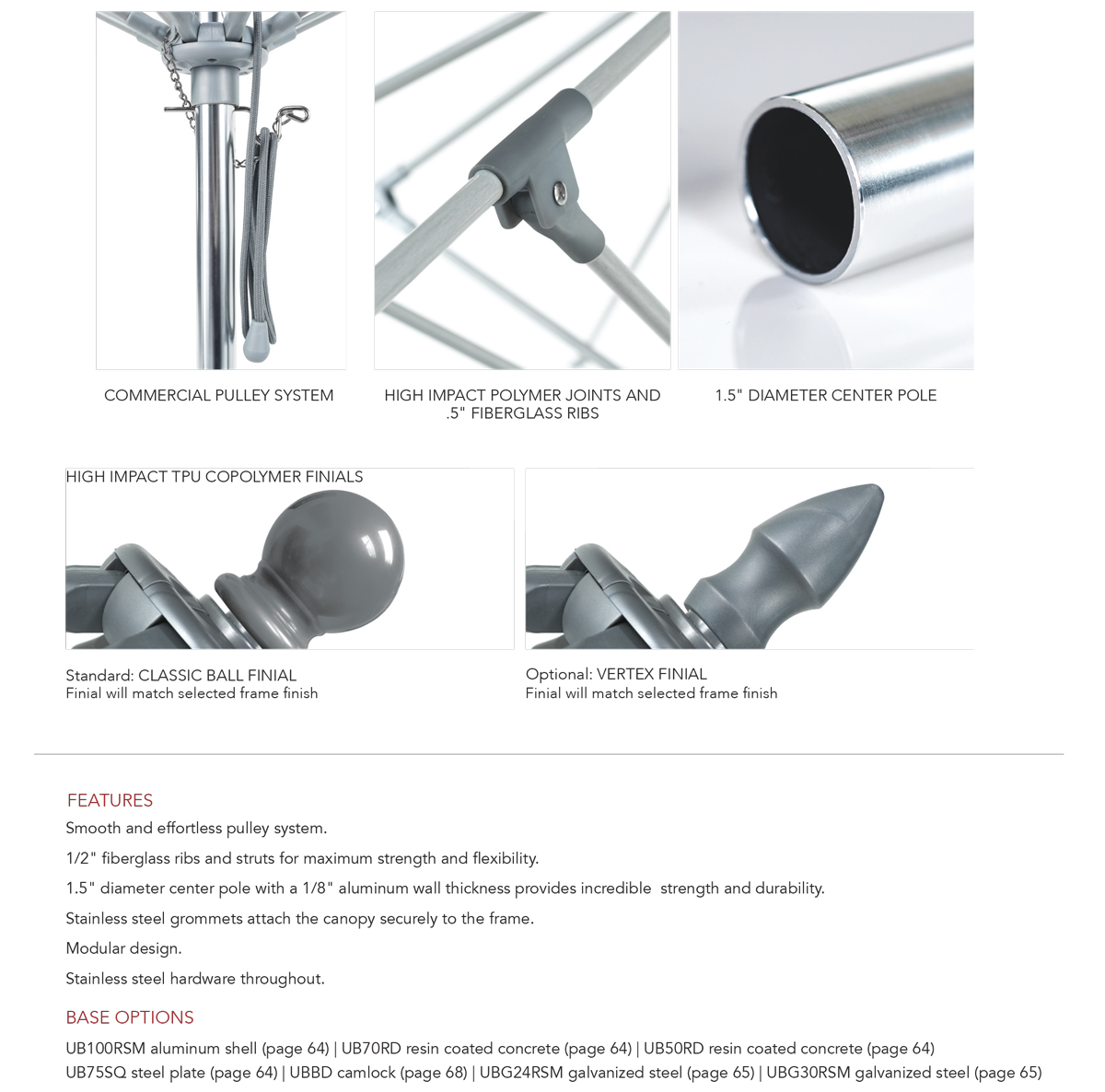 UB100RSM aluminum shell | UB70RD resin coated concrete | UB75SQ steel plate | UBBD camlock | UBG24RSM galvanized steel | UBG30RSM galvanized steel